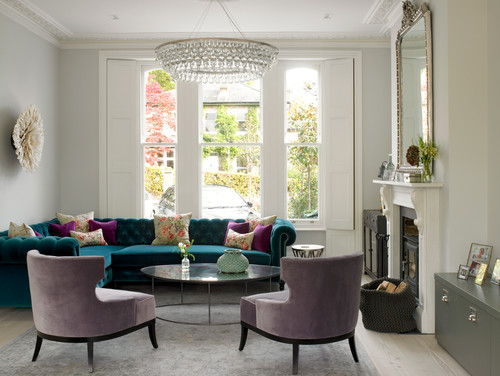 La elegancia de una sala inglesa es incomparable. El sofá Chesterfield y un candelabro de cristal le dan un toque muy refinado a la habitación.